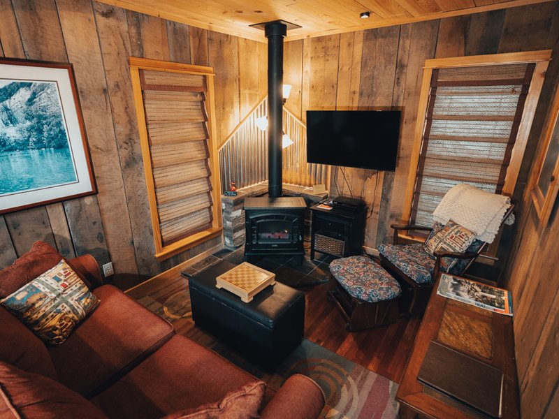 Bear Ridge offers two guests a cozy, fully furnished cabin for a romantic getaway in upper Buffalo River country. The cabin has a main floor and sleeping loft with queen-size bed. We are pleased to offer complimentary WIFI with this cabin rental. The cabin's kitchen features a dining bar and is fully furnished with appliances, basic meal prep utensils and cookware, a coffeemaker and even a dishwasher. In the cabin's bathroom, you'll find a lovely stone walk-in shower, along with towels, soap, and shampoo.